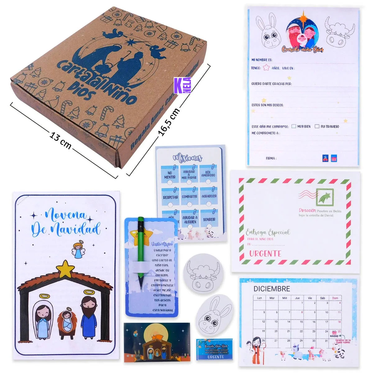 Con este kit, los niños viven una experiencia mágica: escribir sus deseos, agradecer, rezar la novena en familia y decorar con actividades que despiertan su imaginación.